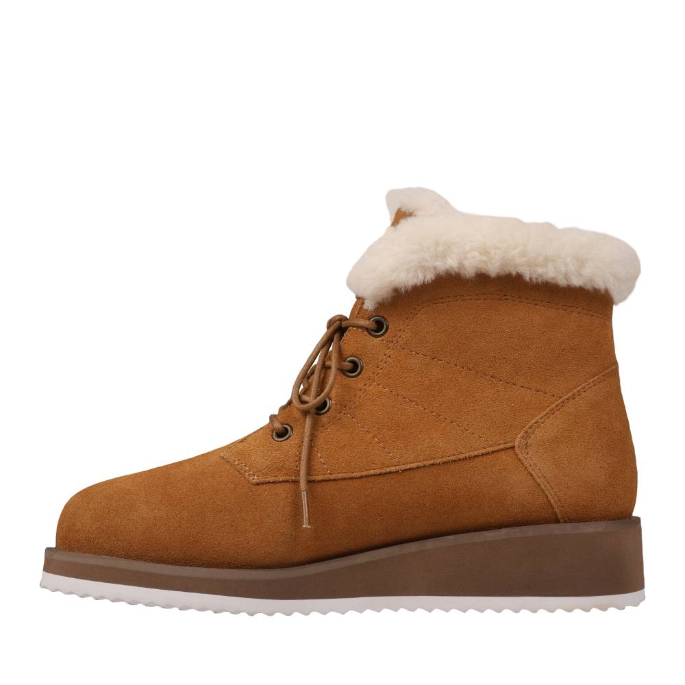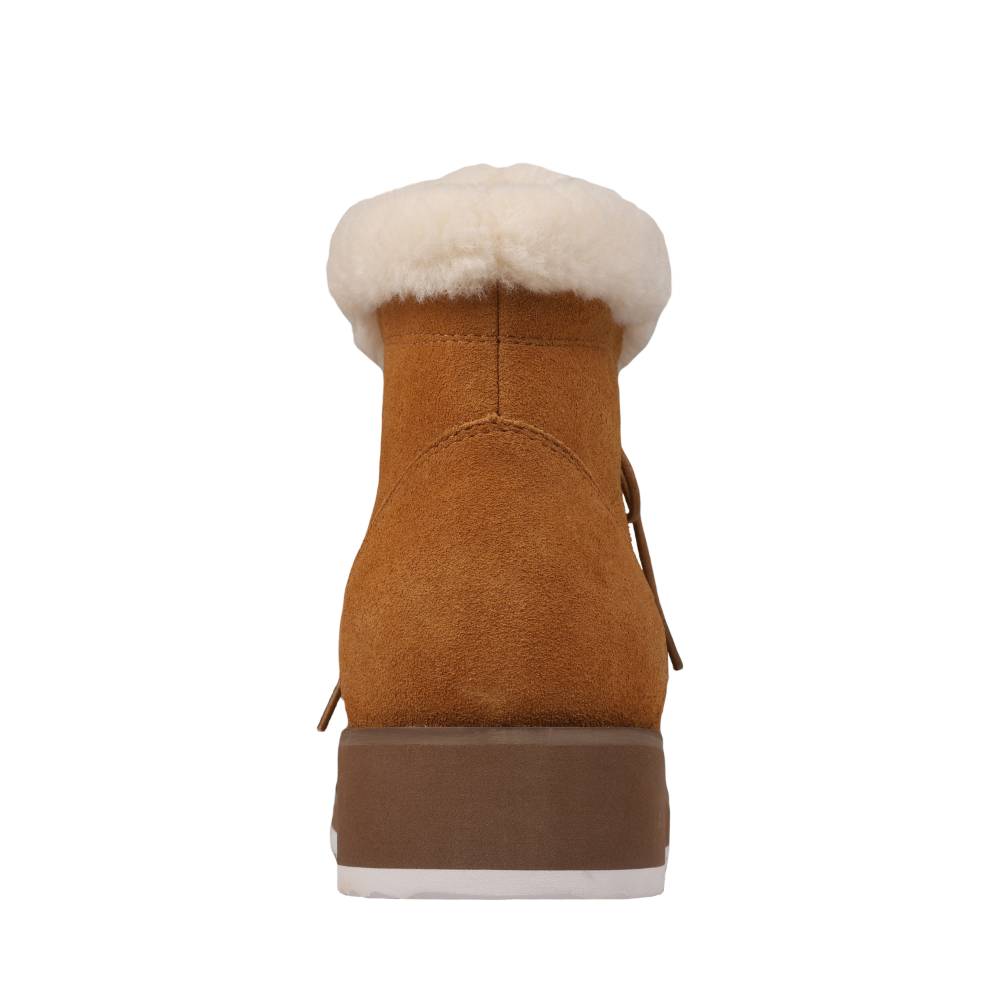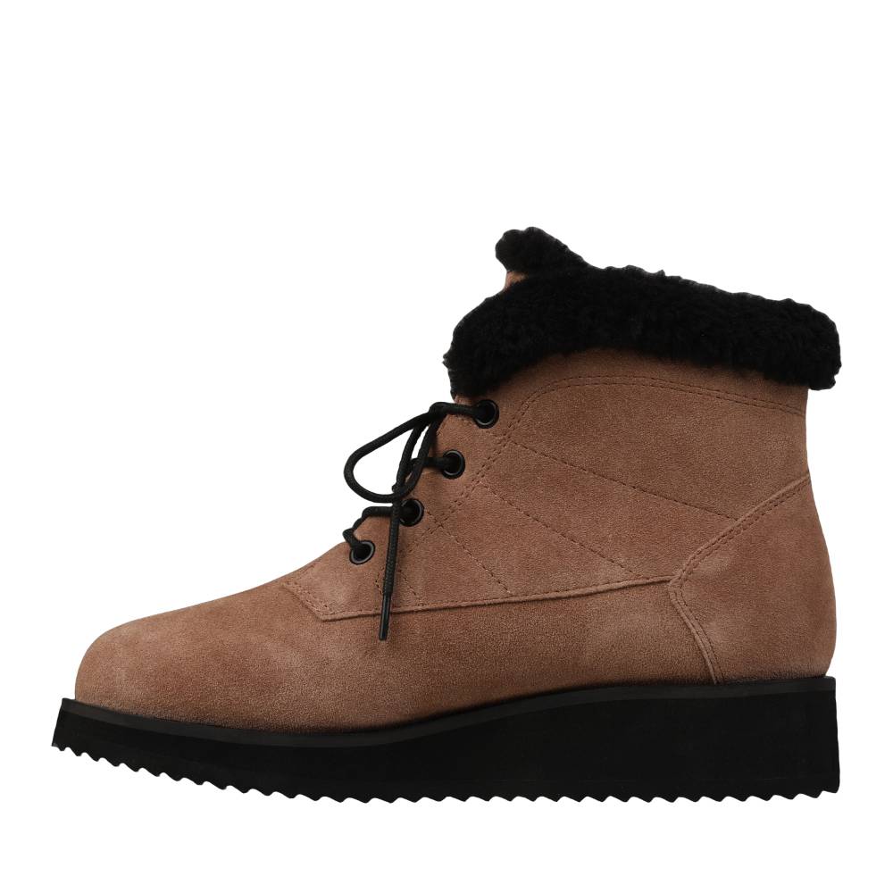 - COMFORT, STYLE AND TRAVEL-READY - The Demi is made with premium suede and a fashionable faux fur collar – featuring an Ortholite insole and sits on a comfy wedge to elevate your style.