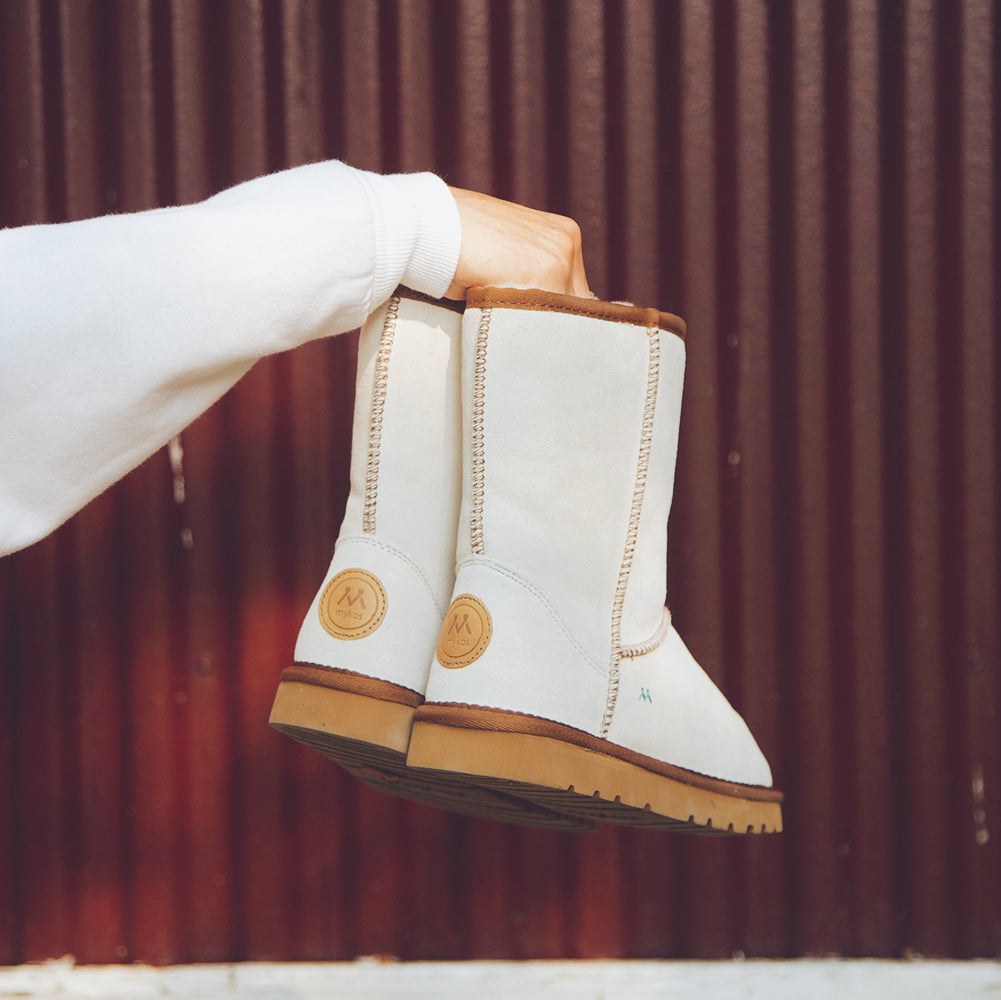 Mykos Women's Kora Suede Pull-On Boot - Cream/Chestnut
